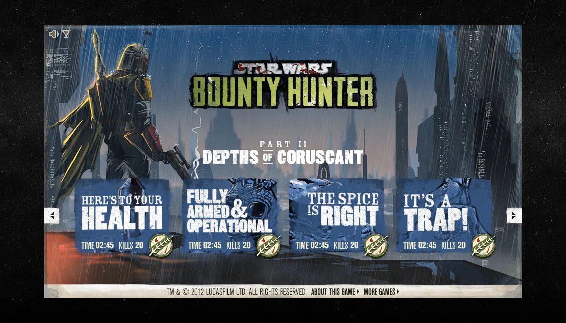 Players would take on the role of the greatest bounty hunter in the galaxy traveling to Tatooine and into the depths of Coruscant, with a final showdown on the Death Star.